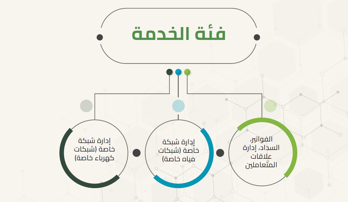 تتضمن هذه الباقة خدمات تصميم وإنشاء وصيانة شبكات الكهرباء ذات الجهد العالي (Bulk HV) بالإضافة إلى خدمات جديدة في مجال خدمة المتعاملين لتعزيز تجربة المتعاملين وقدرات إدارة علاقات المتعاملين لمزودي الخدمات في قطاع خدمات البلدية وقطاع الصرف الصحي وقطاع توزيع الغاز الطبيعي وقطاع التبريد.